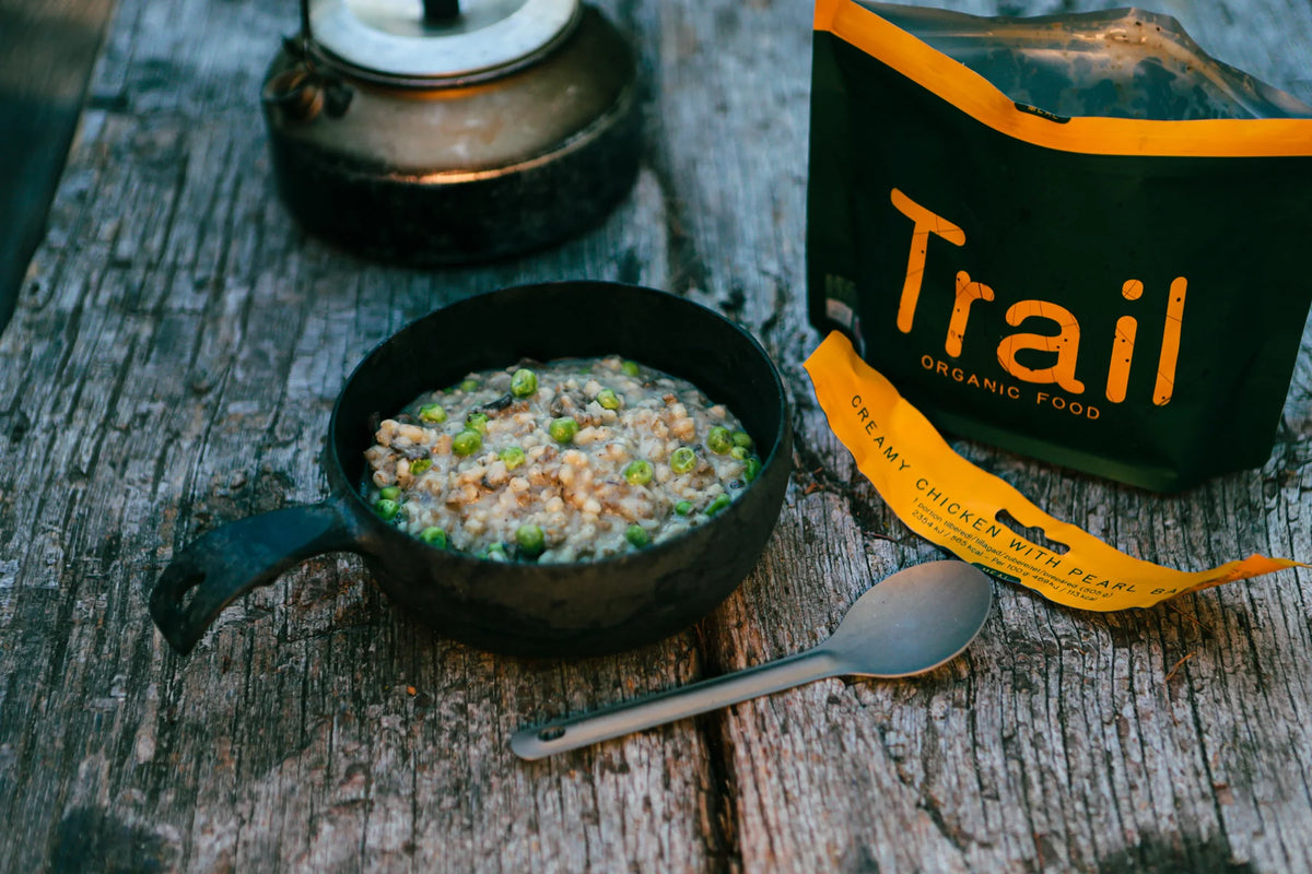 Ingredienser: For at lave 100 g tørt produkt bruges 61 g perlebyg*, 45 g kyllingekød*, 43 g champignoner*, 42 g ærter*, løg*, fløde*, knoldselleri*, rapsolie*, majsstivelse*, hvidløg*, salt, citronsaft*, timian*, peber*, naturlig aroma, kyllingekød*, krydderier*, kyllingefedt*.