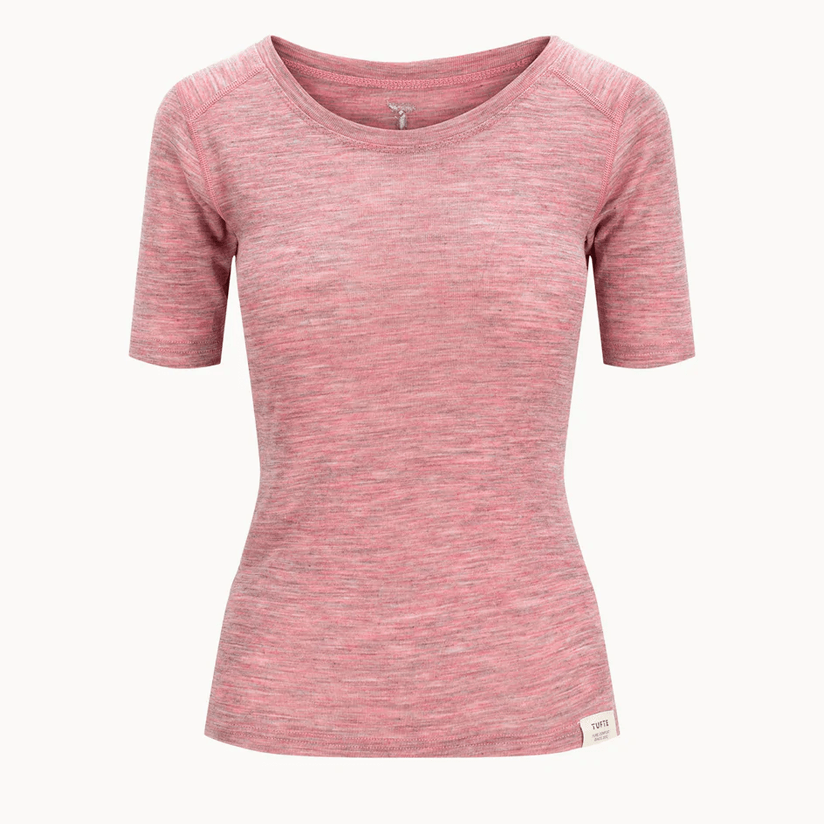 Frost Merino T-shirt til kvinder fra Tufte er et varmt, let og utroligt blødt inderste lag, der skal bæres ved siden af huden. Klæd dig i lag med denne 100% merino Tee som base for god varme. Perfekt under en sweater eller skjorte på en kølig hverdag, eller under en tykkere sweater eller jakke, når du er på vandretur.