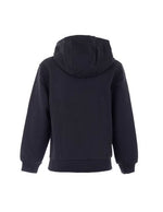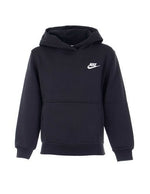 Sort hættetrøje til børn af mærket Nike. Den har et almindeligt snit med hætte, har kængurulommer, elastiske ærmer og kant forneden, og den har mærkets broderede logo på brystet.