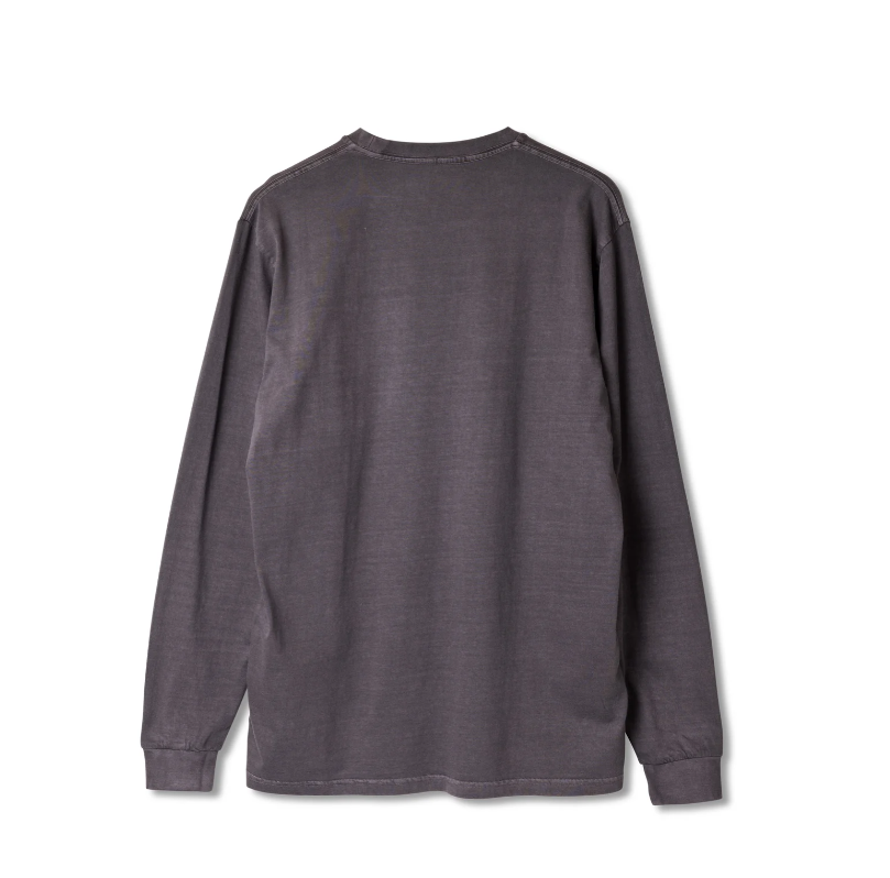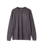 Afslappet pasform, langærmet t-shirt med crew neck, brystlomme og varmeoverført mærkat i nakken.
