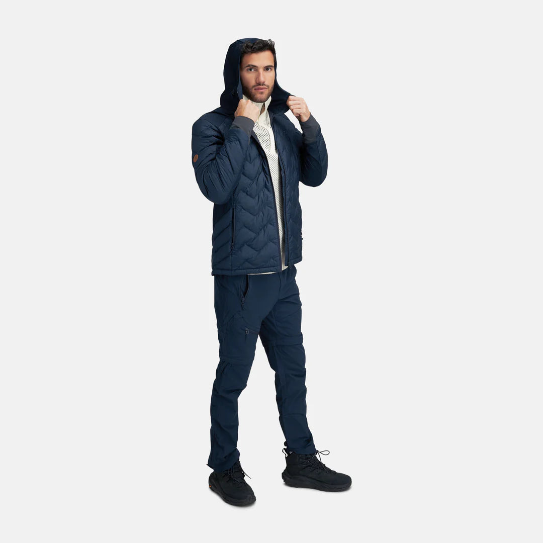 Jakken opleves som en let dunjakke, der ikke er for varm, da den har softshell-paneler på ærmerne, siderne og hele hætten. Derfor navnet Hybrid Jacket, som refererer til placeringen af panelerne, der er nøje tilpasset varmeudvikling og fugttransport. Med en relativt let dunfyldning er jakken både nem og alsidig at bruge.