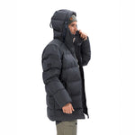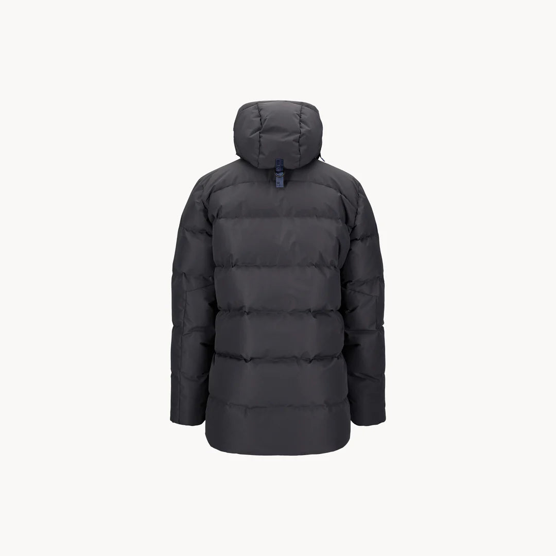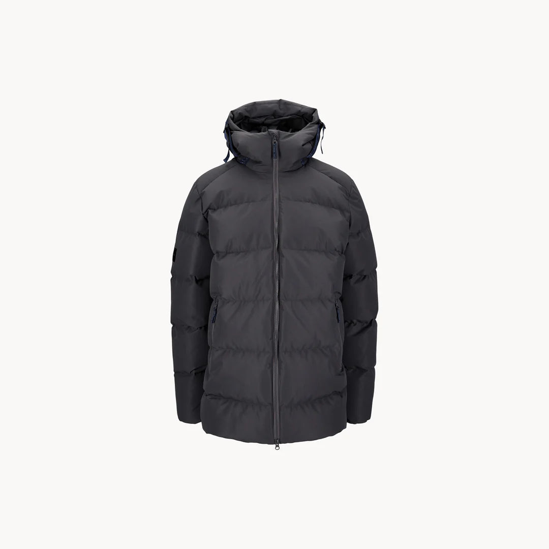 Jakken er fyldt med RDS-certificeret dun, der sikrer både varme og dyrevelfærd. Den store hætte har justerbare stropper foran og bagpå, så du er godt beskyttet mod kulden.