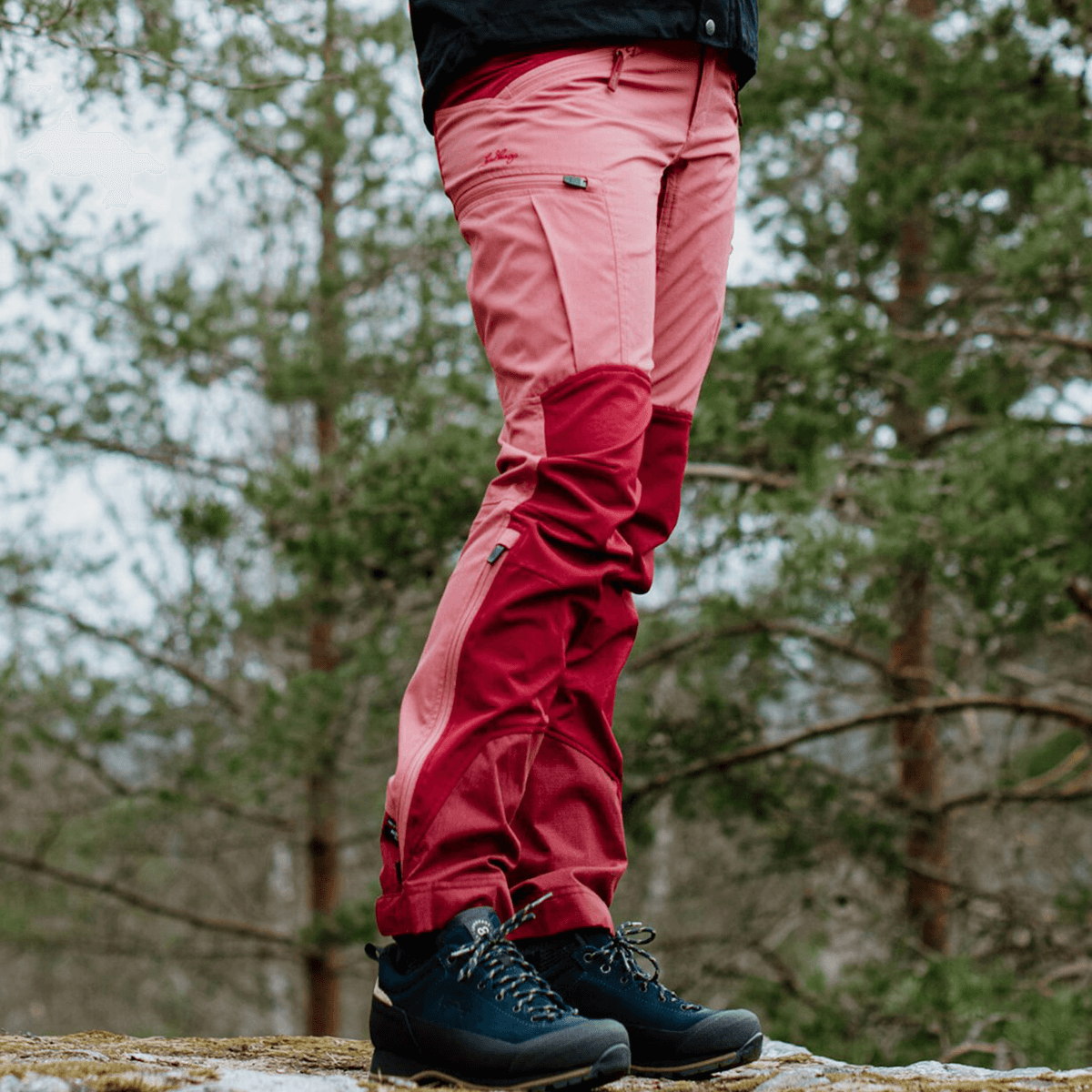 Hybridkonstruktion i LPC med strækpaneler og forstærkning forneden. Ventilationslynlåse på indersiden af benet, i håndlommerne og forneden.