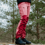 Makke Pant er en teknisk hybridbukse med en smal silhuet, lavet af en materialeblanding optimeret til bevægelsesfrihed og robusthed.