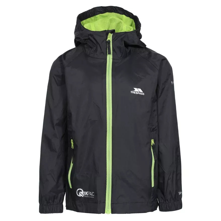 Qikpac Jacket Kids fra Trespass® er en vandtæt, vindtæt og åndbar letvægts-børnejakke, som er nem at tage med på tur, når den pakkes ned i den medfølgende transportpose.