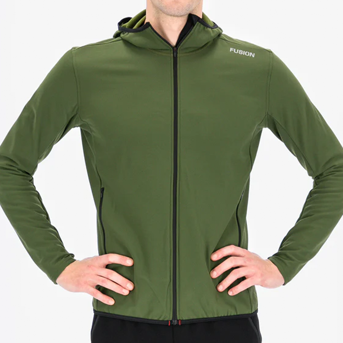 Pasformen, regular fit, betyder en løstsiddende men faconsyet hoodie med lynlås, der både er velegnet til rejsebrug, pre- & after race samt let træning.