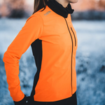 Løbejakkematerialet er meget strækbart, så det får en optimal løbepasform uden at være stram. Kravens inderside er blød og svedtransporterende.