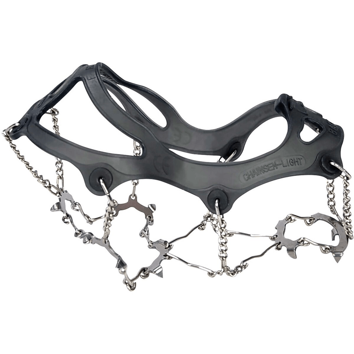 Den lette elastomerkonstruktion sidder solidt på trekking- eller løbesko. De fleksible hælspidser muliggør naturlig roll-over ydeevne