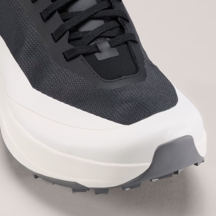 Pasformen sidder tæt, og en strikket krave forhindrer snavs i at trænge ind, hvilket gør skoen til det ideelle valg for krævende terrænløb.