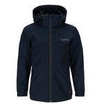Jakke til børn og unge voksne lavet af blød og åndbar softshell. Materialet har god stræk, hvilket sikrer komfort og mobilitet for børn, og hvad end de har gang i. Jakken har frontlommer med lynlås til alle de skatte, børnene ønsker at opbevare.