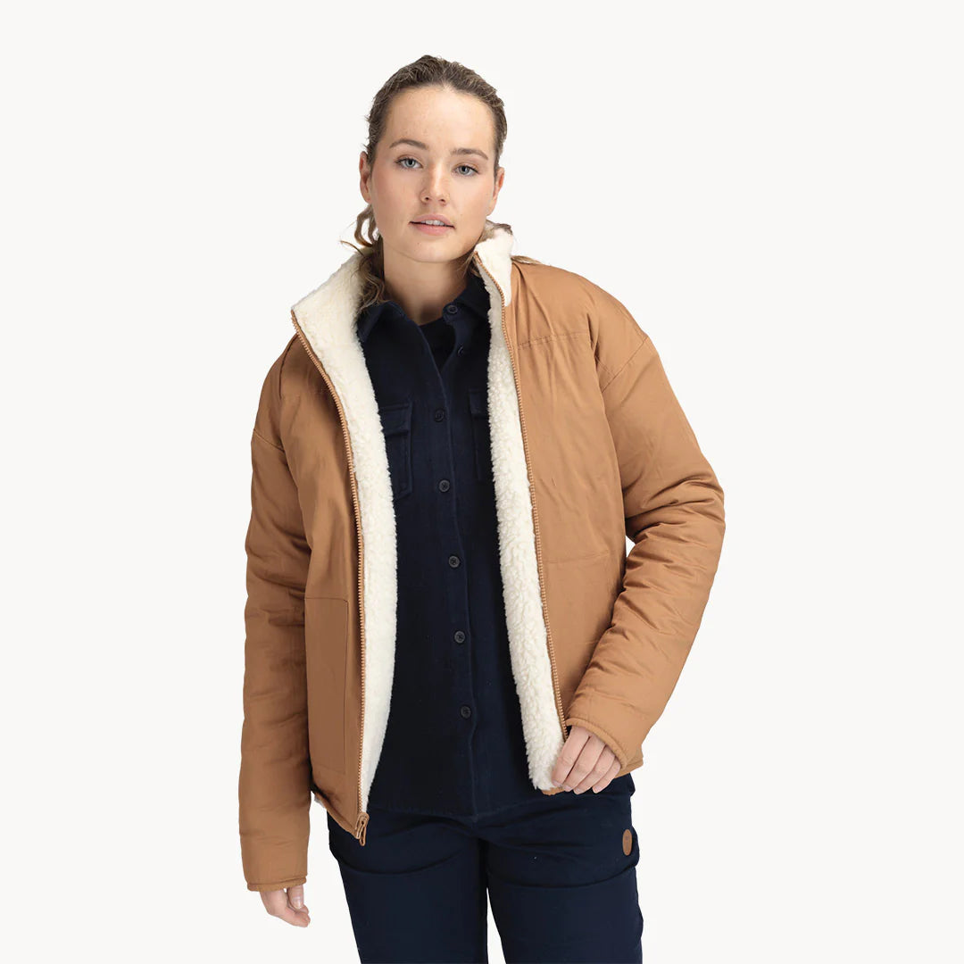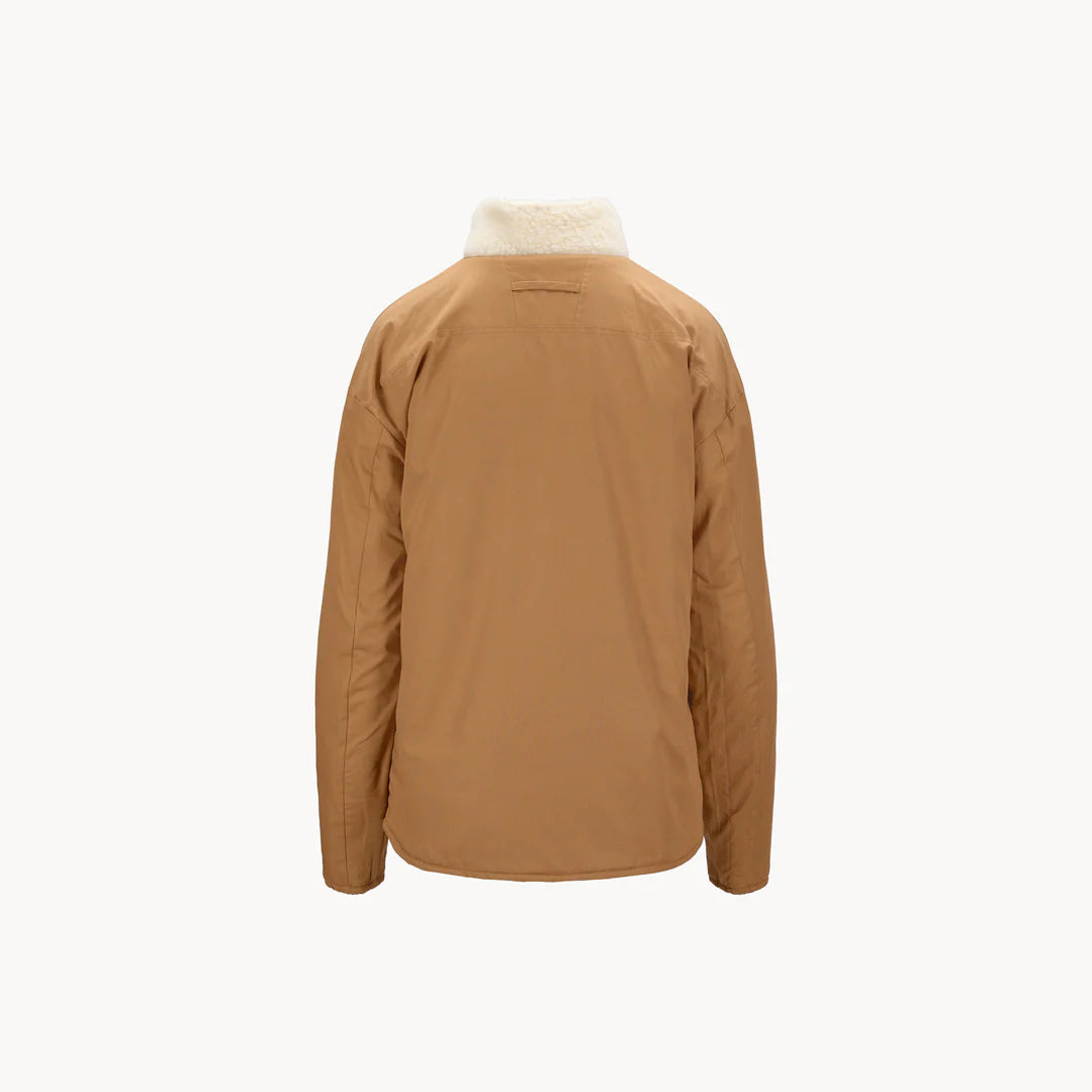 Wolverine Pile Jacket er en vendbar jakke i uld, der kombinerer varme og komfort. På uldsiden har jakken enkle frontlommer med skjulte trykknapper samt fine kantdetaljer langs nederste kant og ærmer. På bomuldssiden finder du praktiske påsyede lommer og en hængeløkke på bagsiden.
