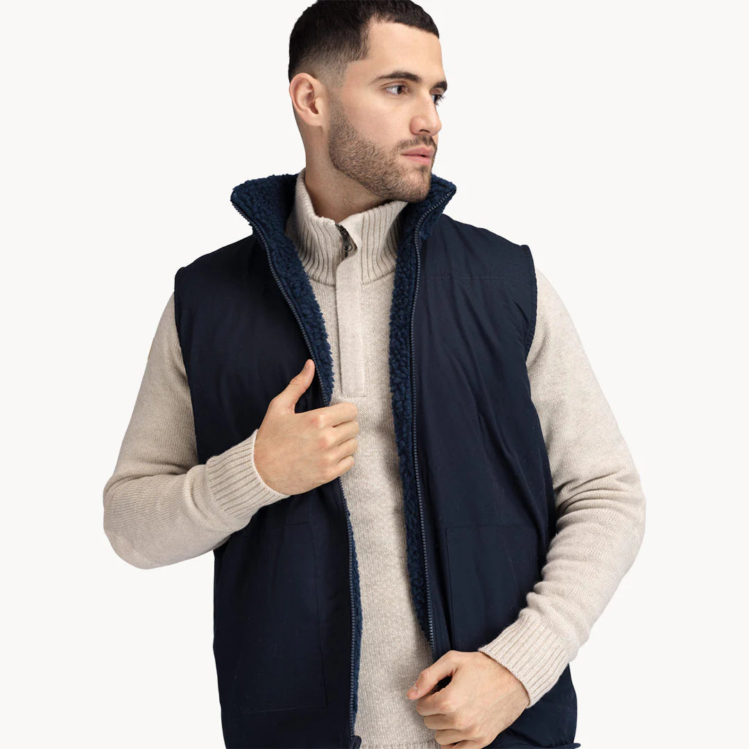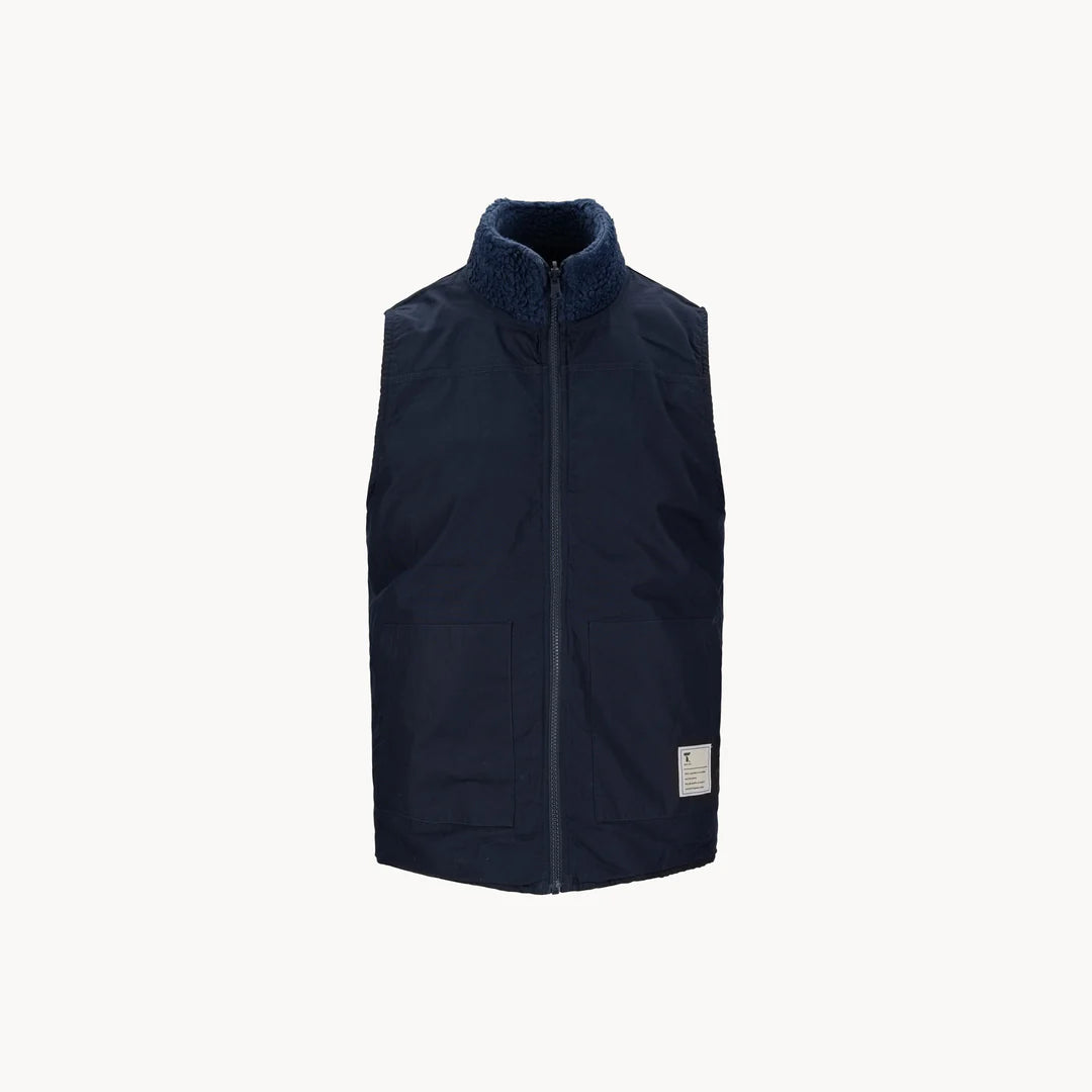 Wolverine Pile Vest er varm og behagelig, perfekt til hverdagsbrug. Den uldne side har enkle frontlommer med skjulte trykknapper samt fine kantdetaljer langs nederste kant og ærmegab. Foringen har praktiske syede lommer og en hængeløkke på bagsiden.