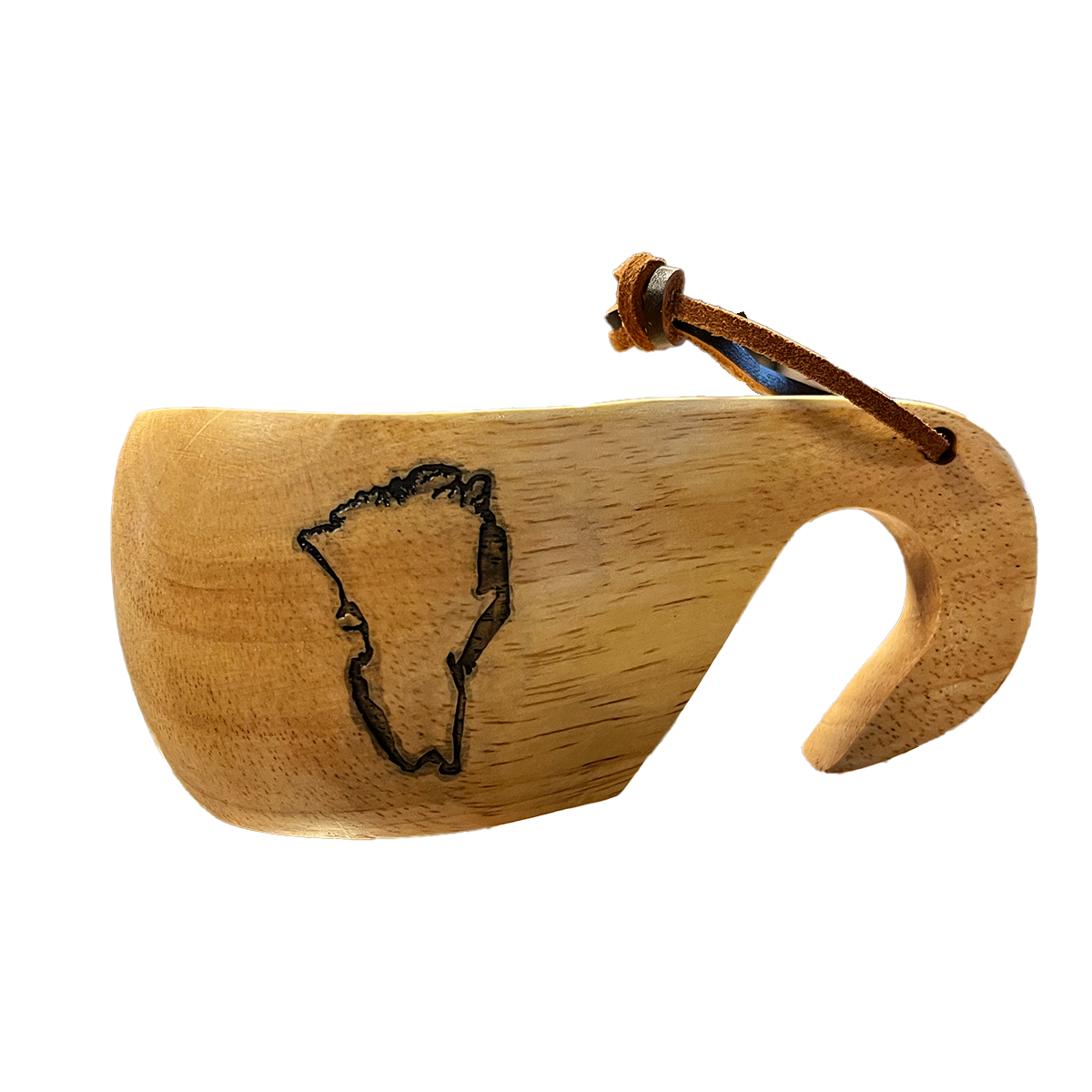 Den kommer med en lædersnor så den nemt kan hænges på tasken og være tilgængelig når du står med fødderne i en lækker klar smeltvandselv. Den er også velegnet til the, kaffe og en hurtig kop suppe.