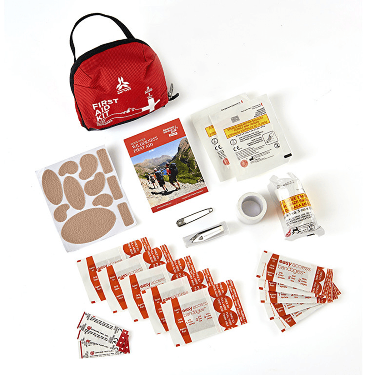 Du finder alt, hvad du skal bruge til at rense og bandagere små skrammer og flænger samt til at pleje forbrændinger. Et blisterforebyggelseskit medfølger også.