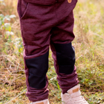 Gullvinge Pants er i den blødeste "wool fleece" som består af kraftigt vævet merinould. Der er sat slidlapper på knæ i en økologisk, kraftig bomuld, så tøjet skal man ikke være bange for at bruge i det fri. Tøjet er holdbart, og fordi vi kun arbejder i fin uld, kan du ofte nøjes med at lufte tøjet rent.