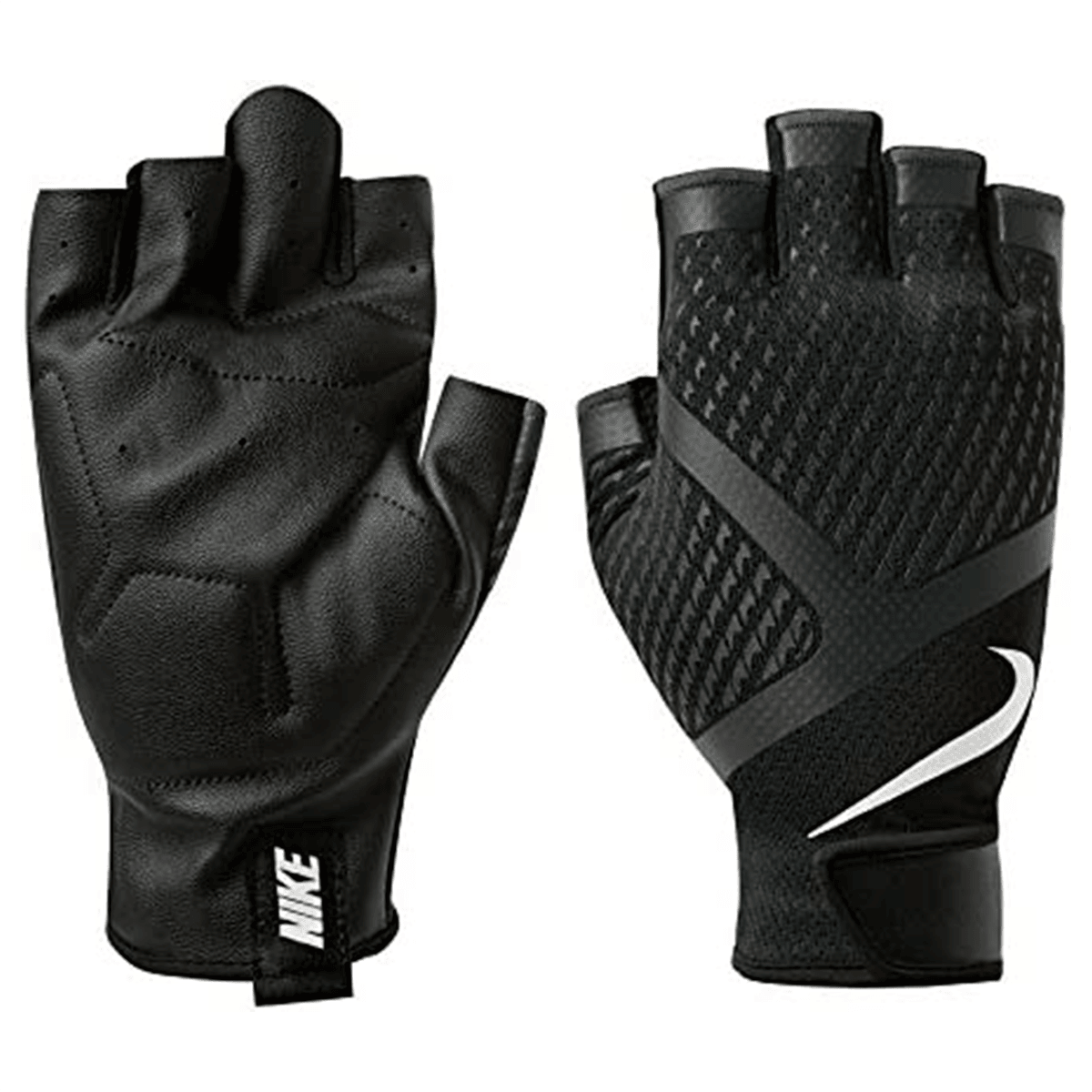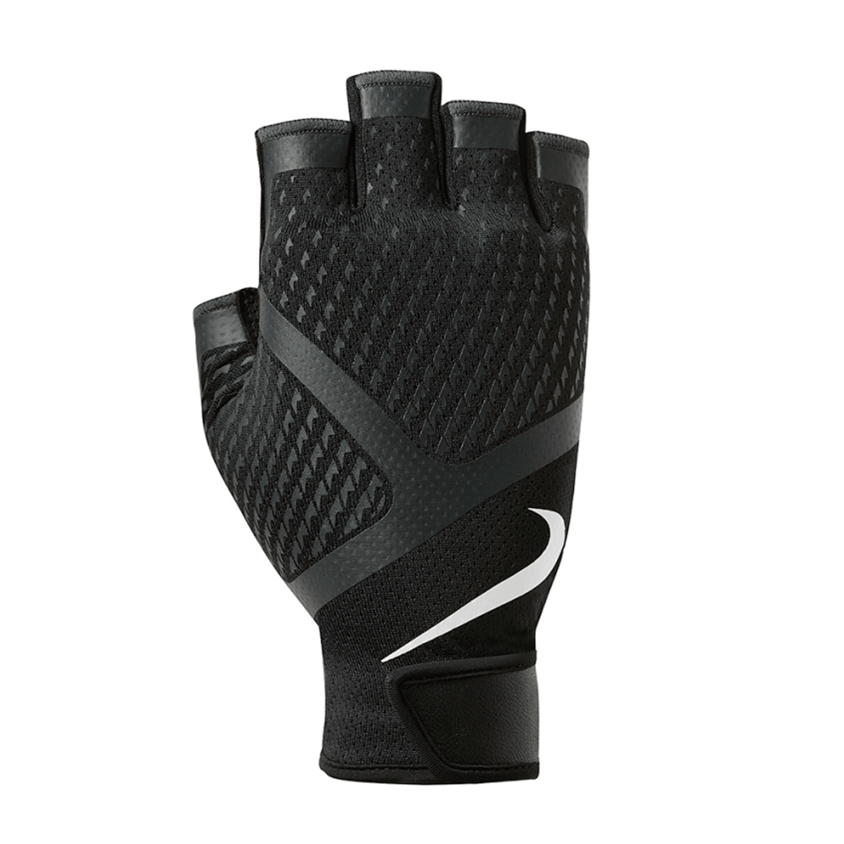 Træningshandske til mænd fra Nike. Handskens håndflade er i polstret PU-læder, der giver en god beskytteslse og komfort. Der er en støttende lukning ved håndleddet, som giver en god pasform og et godt greb ved intens løftetræning.