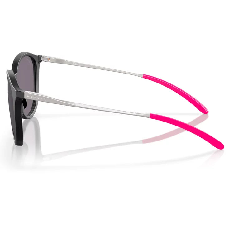 Oakley Sielo solbrillerne tilbyder enestående visuel komfort til dine daglige udendørs aktiviteter. Fremstillet af en robust blanding af injiceret plastik og metal, supplerer stellet harmonisk den runde form af linserne, hvilket giver disse solbriller et tidløst, klassisk livsstilslook, der går på tværs af sæsoner.