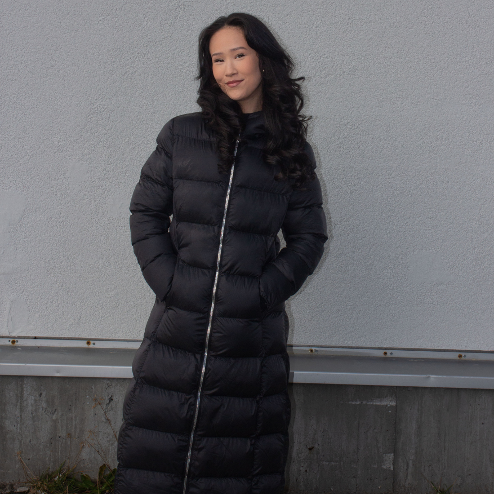 Mangler du en varm vinter jakke der er lang nok til at du ikke behøver overtræksbukser?