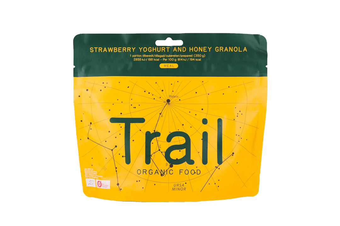 - ECO Frysetørret jordbæryoghurt (33 %) med honningristet mysli (67 %). Glutenfri